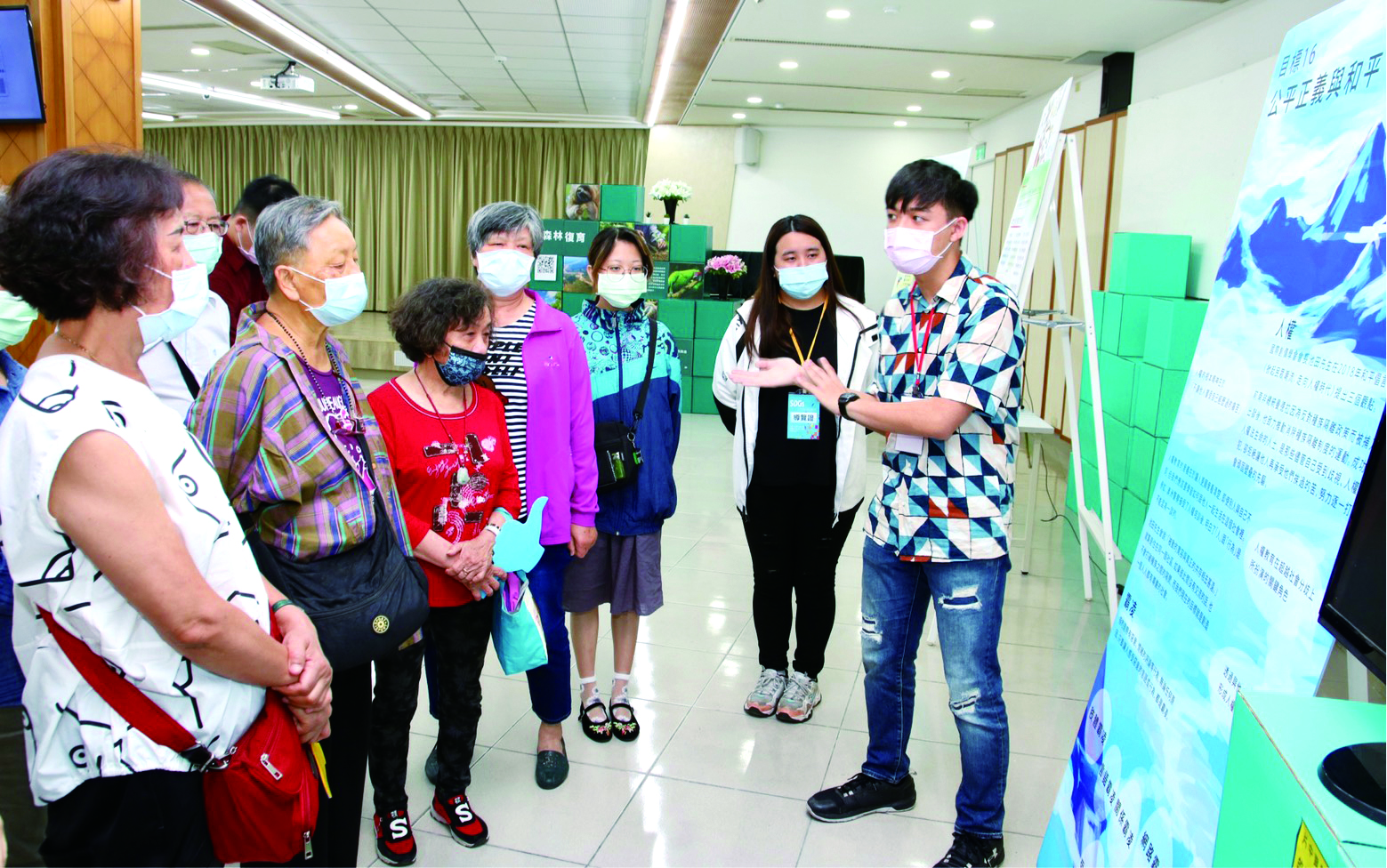 台南東區的中華大學會、長榮大學會同學,將平時投入淨山、實踐SDGs(目標15陸地生態)的情形製成影片後,於展場中播放。觀展民眾看完影片後,稱讚他們的行動力,一定會讓環境變得更好。