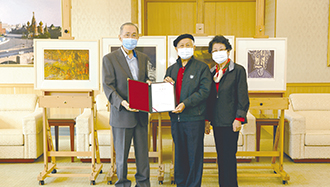 創作超過一甲子、獲獎無數的陳國展,此次特別精選出他的重要代表作贈送給創價。對此,林理事長特別致贈「典藏狀」,並期盼今後持續為推動文化馨香的社會攜手努力!