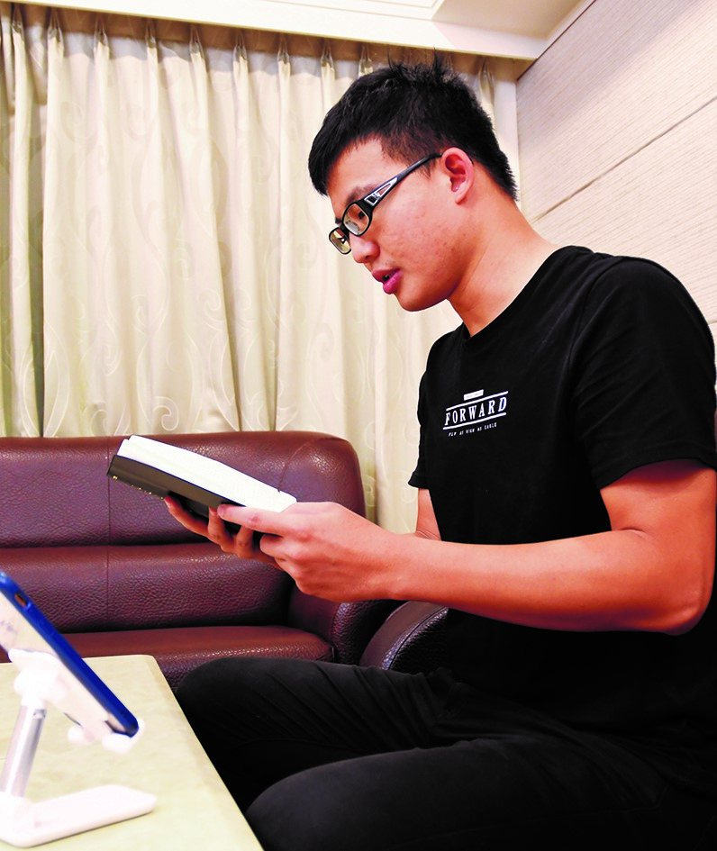 高雄中區支部男子部長賴駿豪提到,每次線上朗讀御書,都會認真思考《御書》內容,每一次的閱讀就是深化信心的機會。