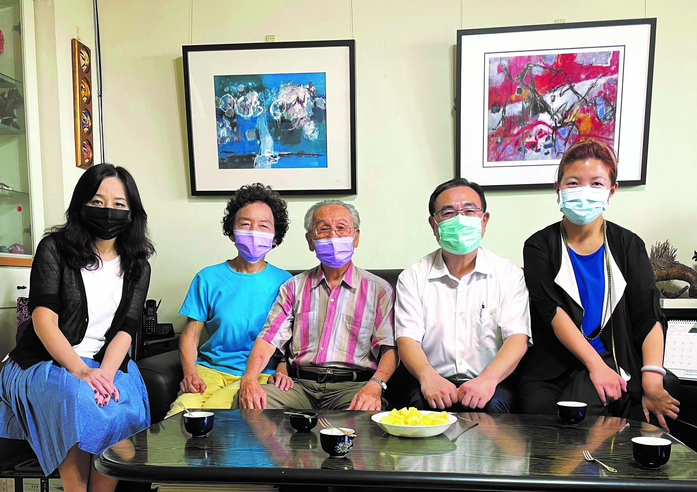 | 洪玉柱副理事長拜會陳銀輝教授伉儷(左3、左2) |