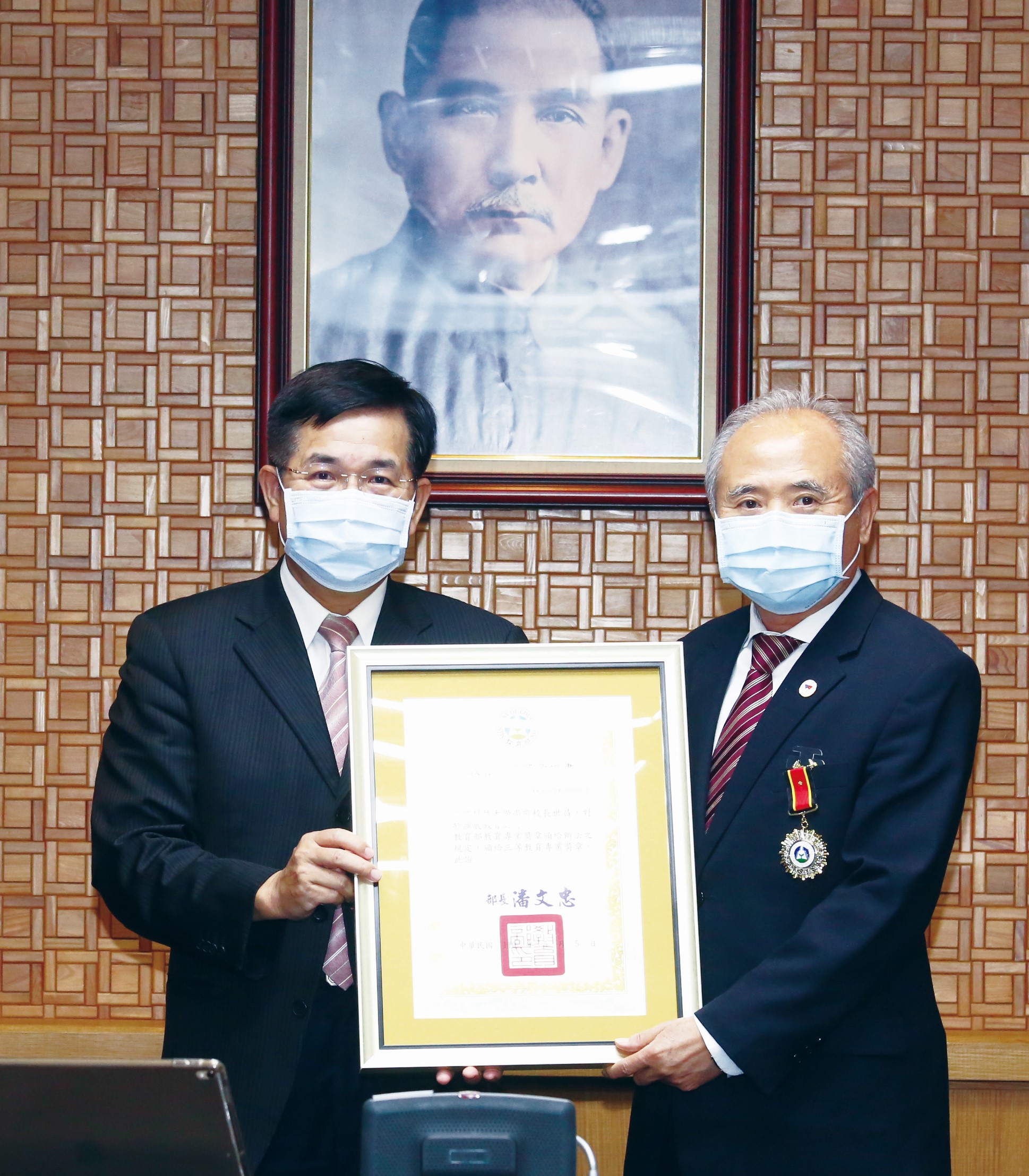 | 尚世昌(右)獲頒教育專業獎章殊榮 |