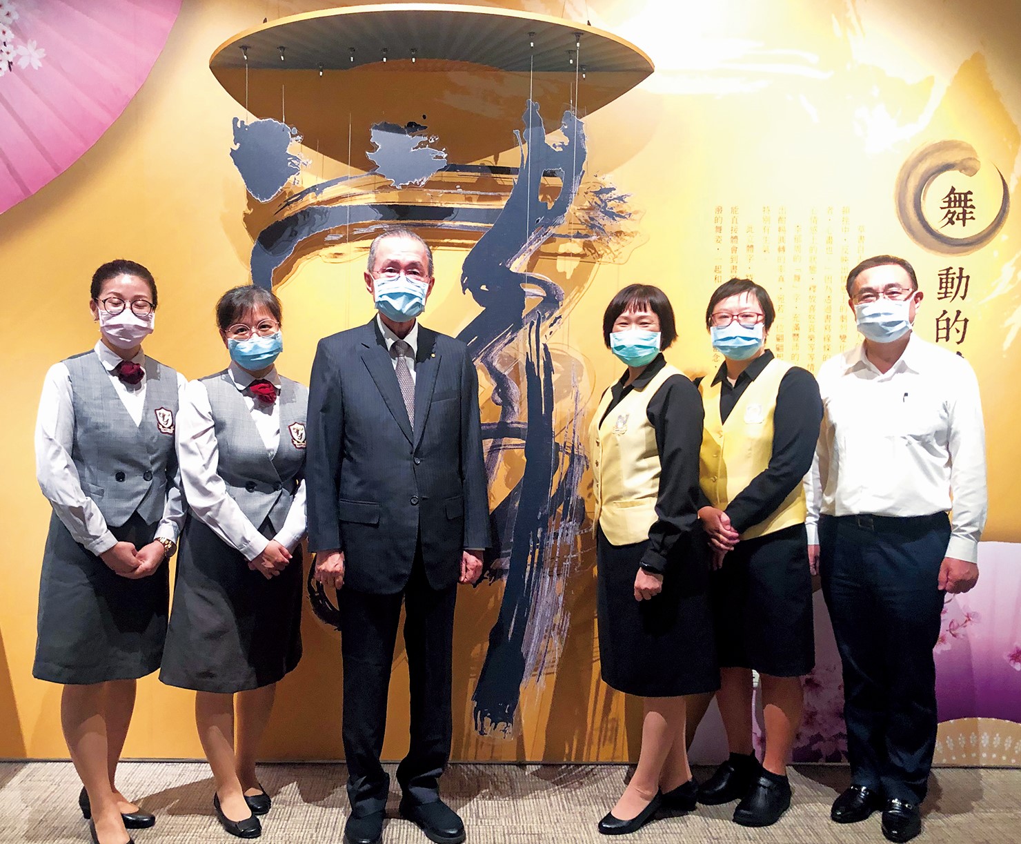 19日,於板橋藝文中心觀展時,聽聞外界近期觀展的熱絡情形時,例如,李郁周教授於16日就邀約了近200位書法界人士蒞臨觀展,林理事長特別對於導覽員、金葵會等義工的用心服務,致上衷心感謝之意。
