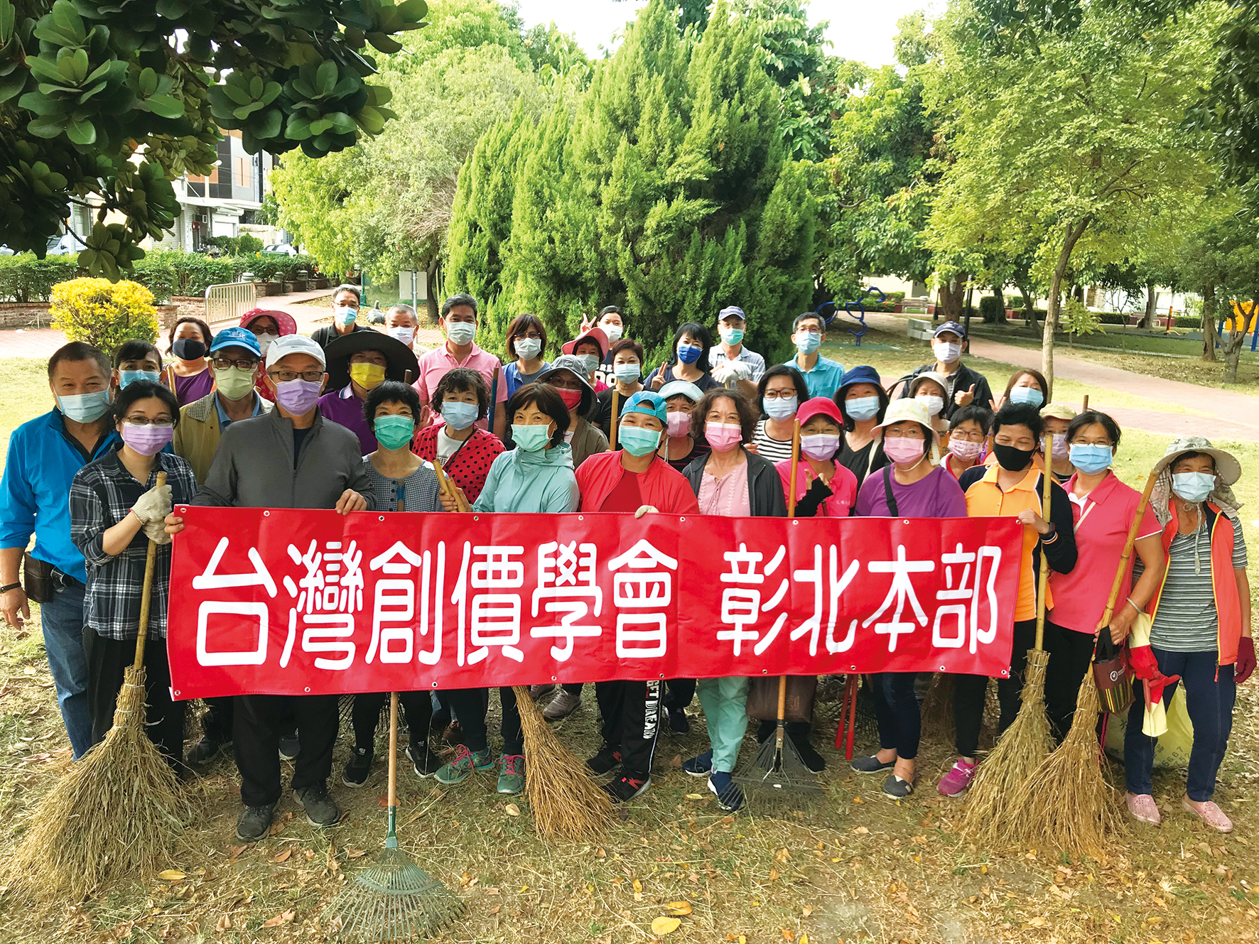 彰化會員歡喜投入「秀水自辦重劃公園」打掃清潔、維護工作。