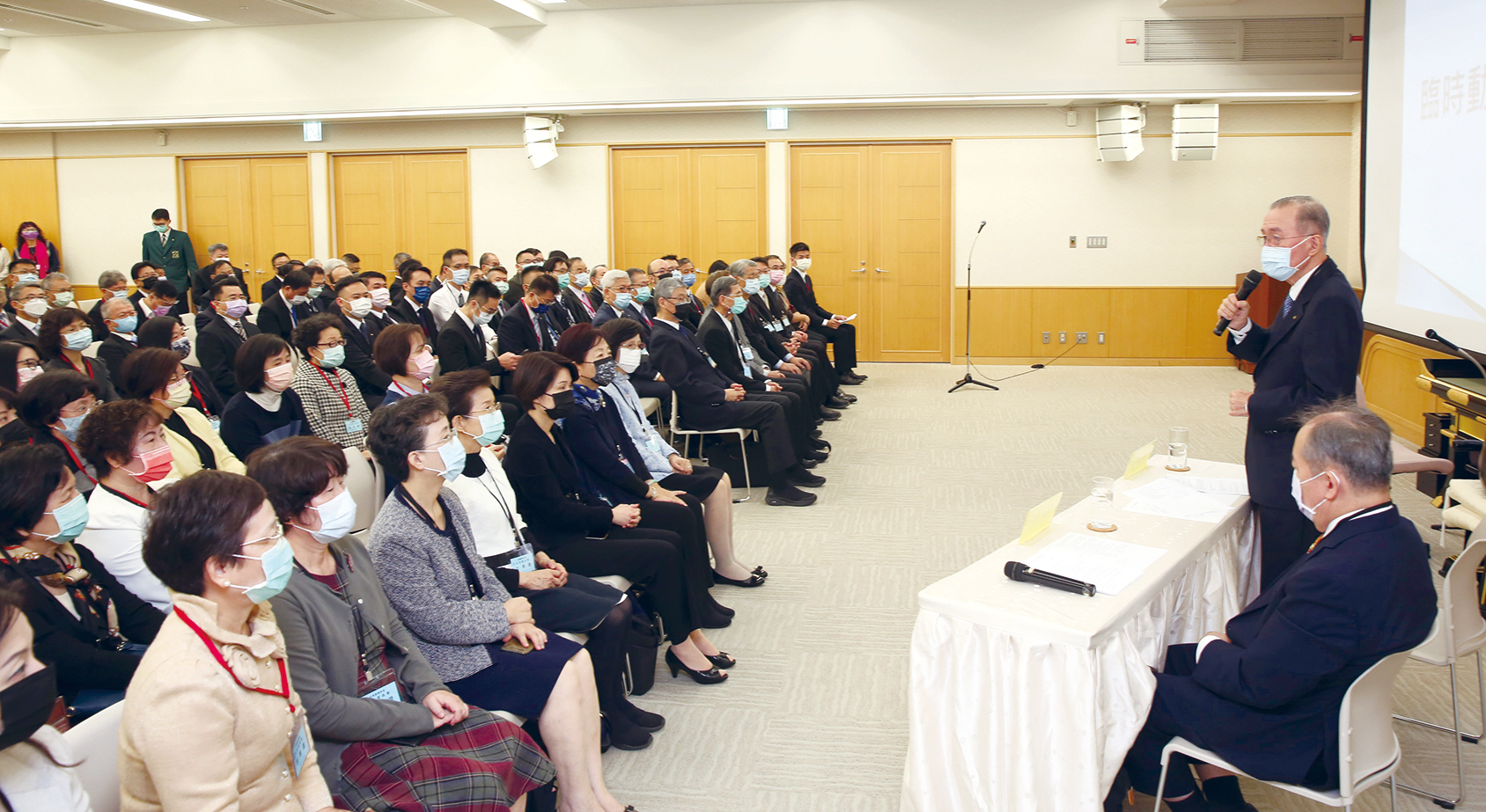 林理事長致詞時,特別感謝池田先生及全體會員的信賴與託付,並說:「從會則施行以來,每次的開會與選舉,都是為了未來的永續發展,期讓創價能夠永遠走在法治化、制度化的康莊大道上,進而為廣宣流布開展新局。」