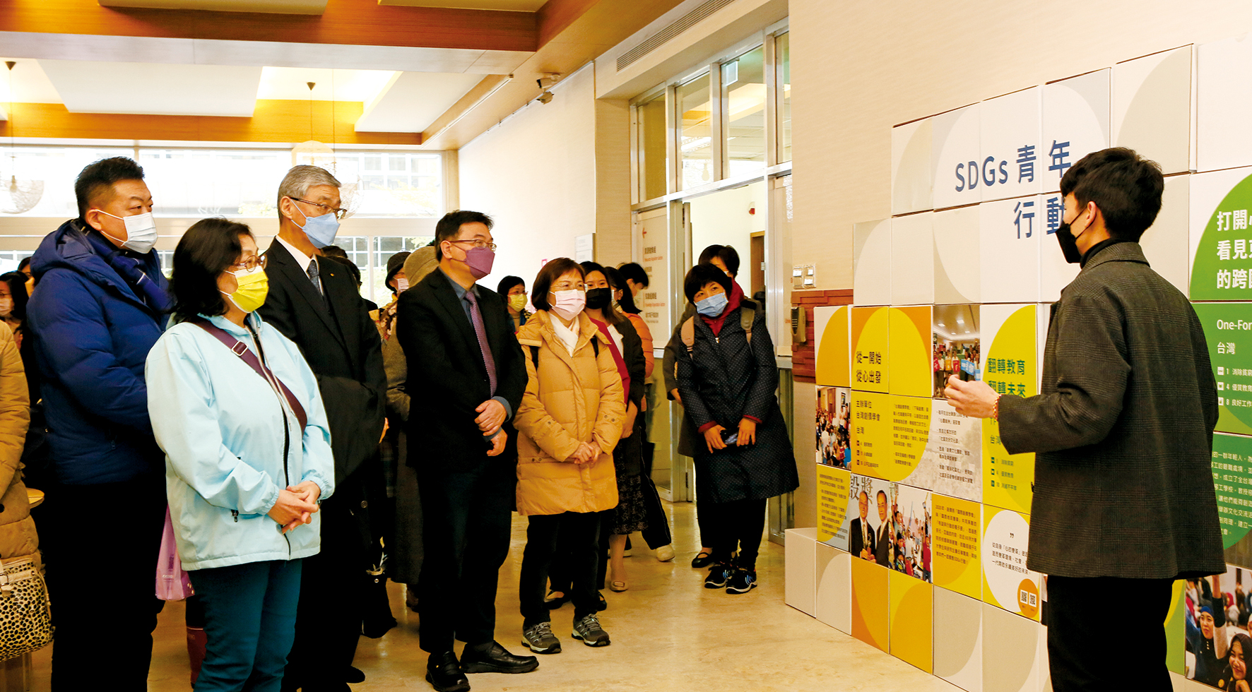 此次展覽,政大的「創價青年社」共有13位學生擔任導覽員,並展出該社成員以SDG2「消除飢餓」為主題所展開的實際行動與成果,內容包括:減少剩食、均衡飲食、提倡將食物捐贈給食物銀行或社福單位等,呼籲觀展者為「消除飢餓」共同努力。