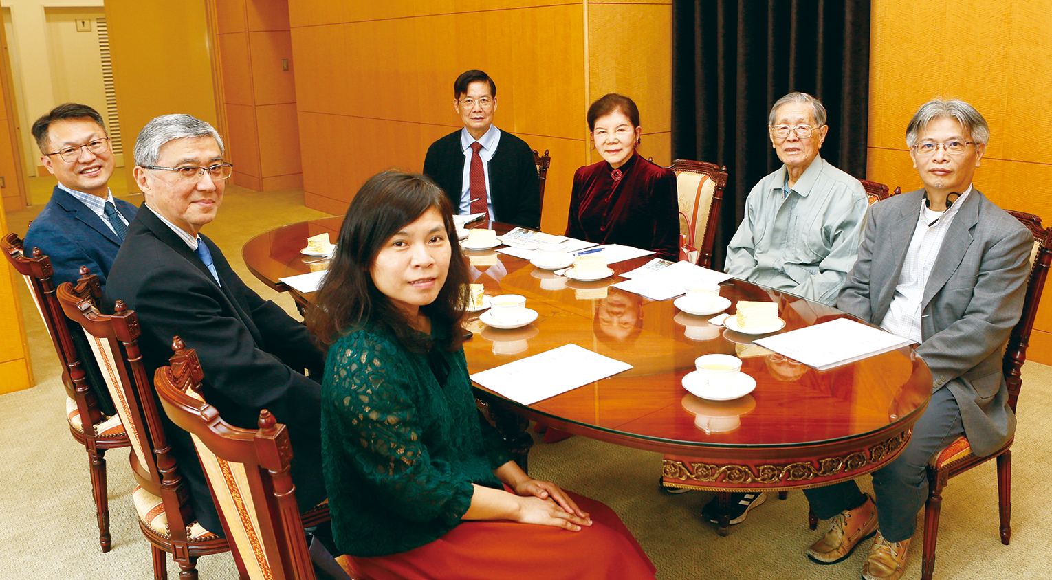 會中,在林前校長推薦下,全體委員一致通過該校兼任助理教授許重愽(右4)成為研究中心研究員。當天,除了針對4月30日將舉辦「論壇」的各項工作細節進行討論之外,李彥良主任並報告該校將於4月25日舉辦「SDGs×希望與行動的種子展」的好消息。