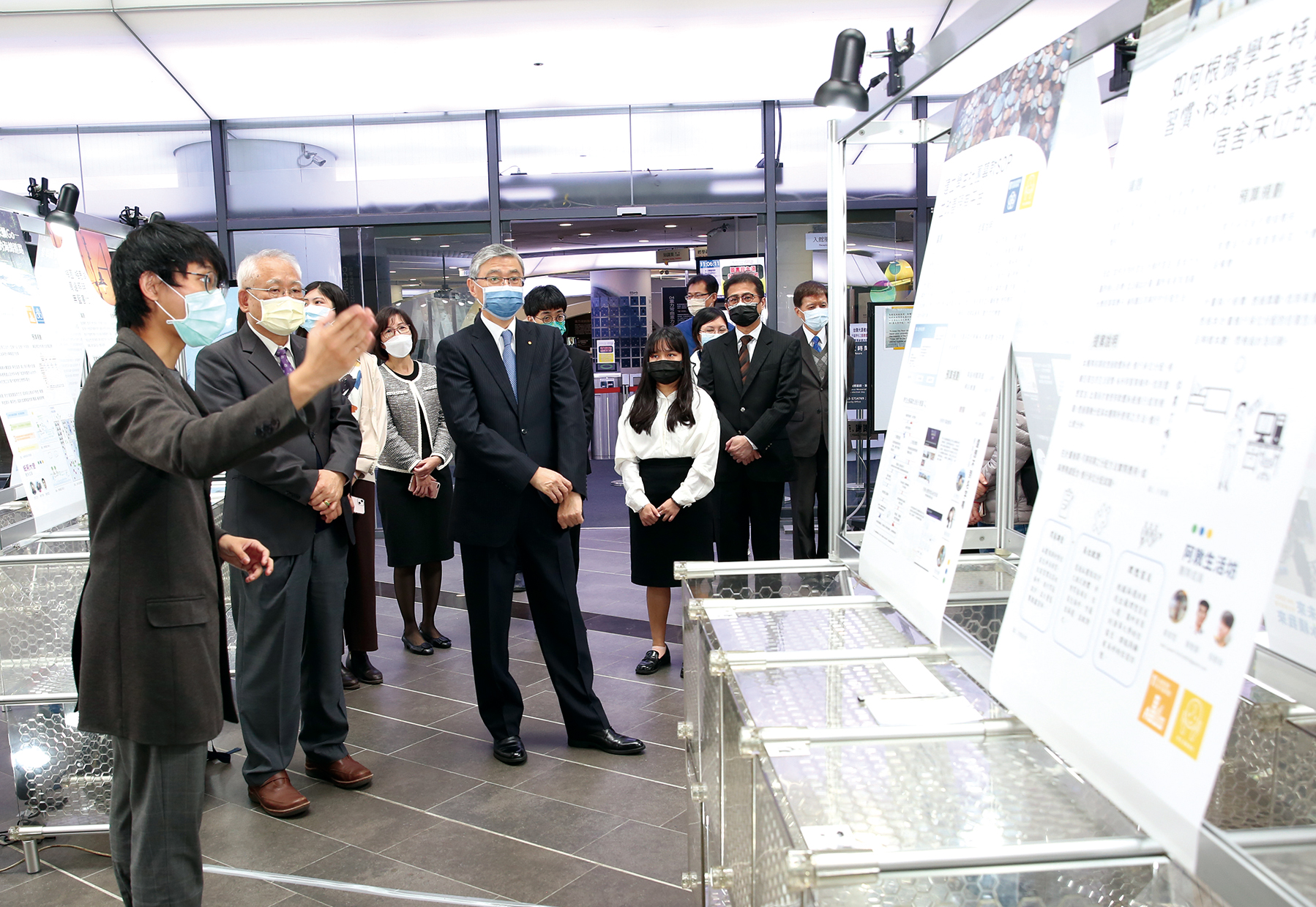 | 「清華綠點點」召集人黃川(左1)為師長導覽成果展 |