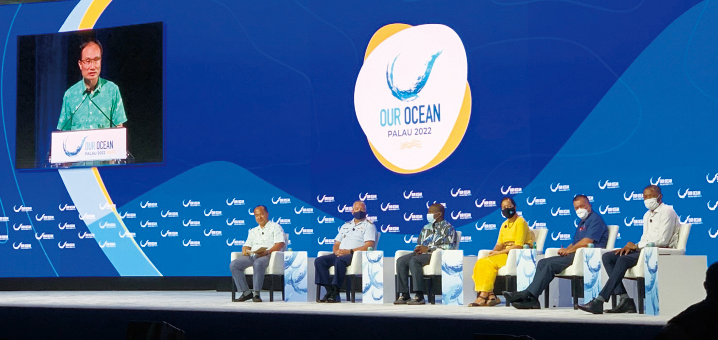 | 蔡清標政務副主任委員於帛琉海洋大會「實現海洋安全」場次發表台灣承諾,展現我國對海洋保育的決心。(外交部提供) |