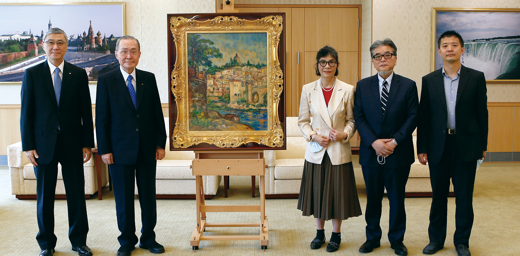 當天,岡田貴雅表示:「10年前初見〈山城遠眺〉這幅畫就特別喜愛,如今,得知創價美術館即將落成啟用的消息,心想與其放在家裡自己欣賞,不如與更多人分享,創造它的最高價值。」