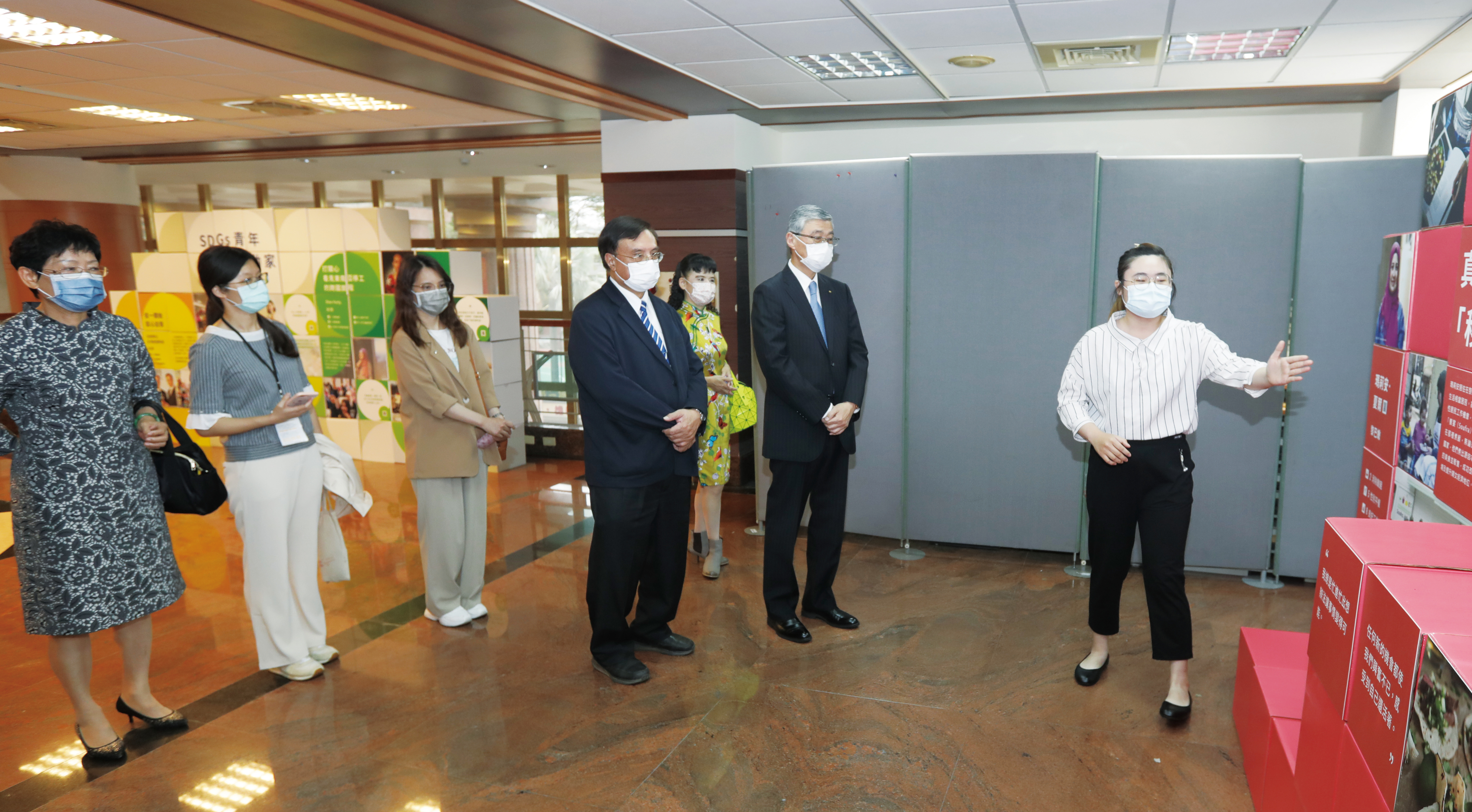 致詞時,江校長首先感謝創價引進這項深具意義的展覽。他說:「人類從工業革命之後,過度消耗自然資源,對地球造成巨大傷害,因此,非常敬佩池田先生與創價長年為了世界和平、生物永續共生所付出的行動。」他呼籲全校師生能用心學習、認知SDGs的意義,進而改變自身的觀念、行為,朝著經濟成長、環境永續及健康生活三者平衡發展的方向持續前進。