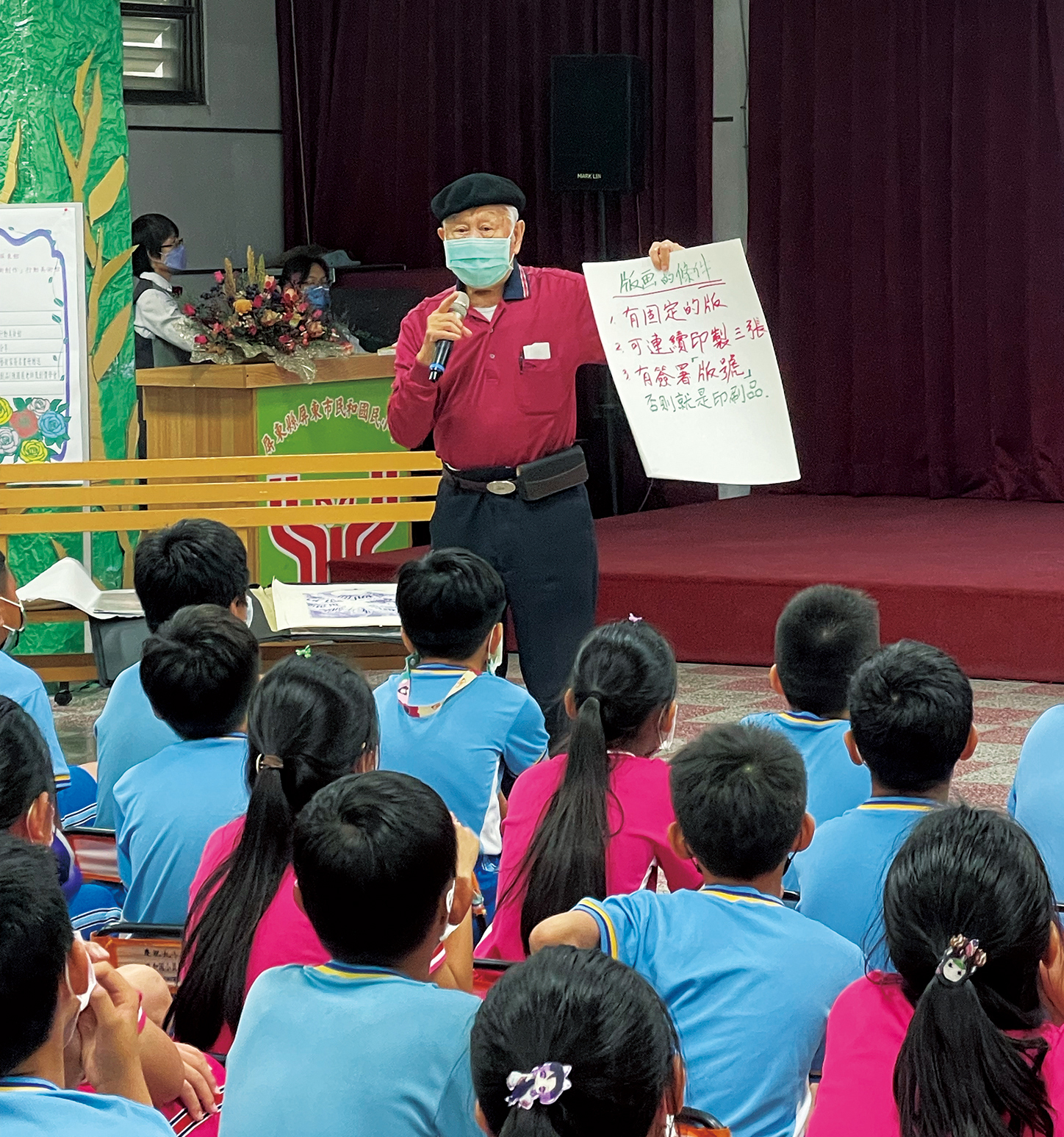 當天,除了觀賞啟蒙影片之外,學生們並用心聆聽陳教授所講解的版畫製作過程。進行有獎徵答時,學生們踴躍舉手回答,氣氛熱絡。