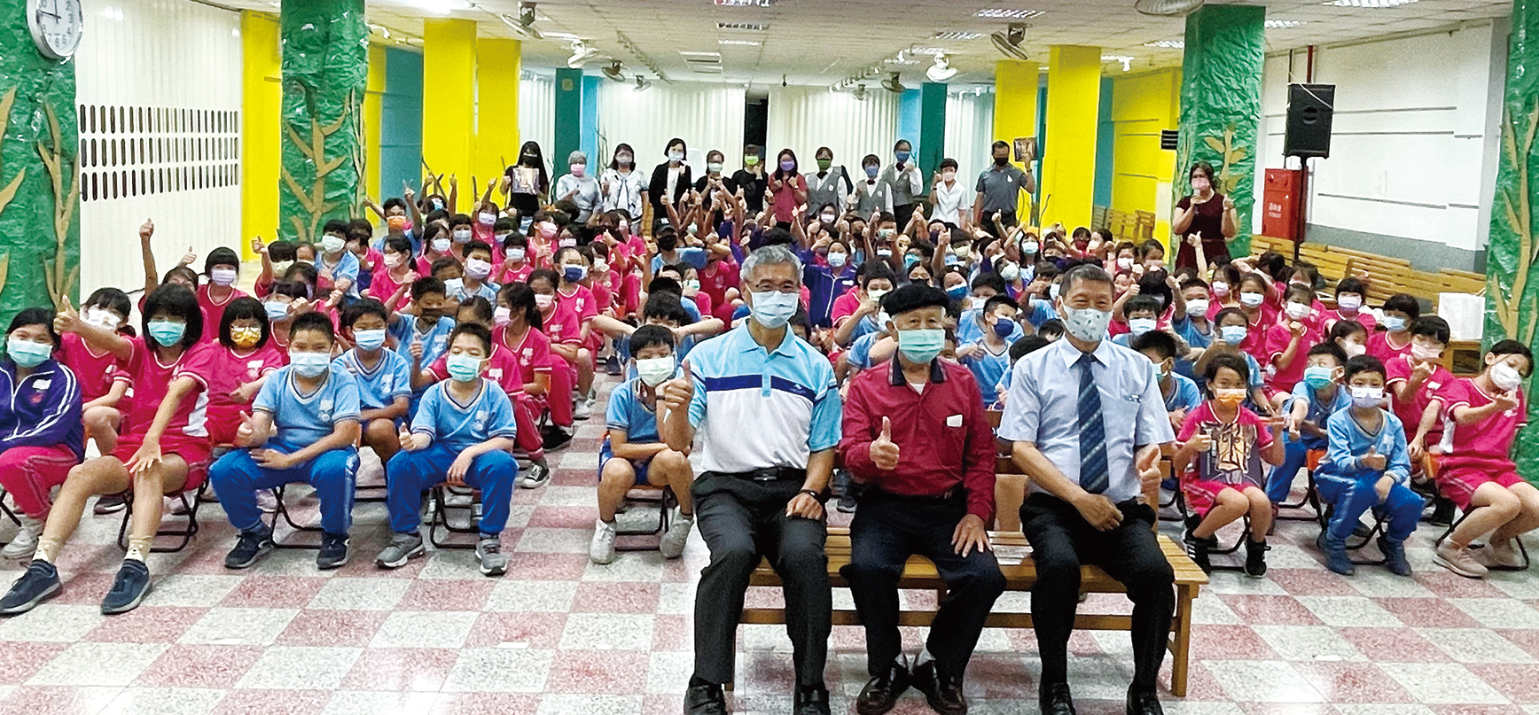 | 陳國展教授(前排中)在民和國小舉辦行動美術館,黃拓榮校長(前排左1)與160位師生熱烈參與。 |