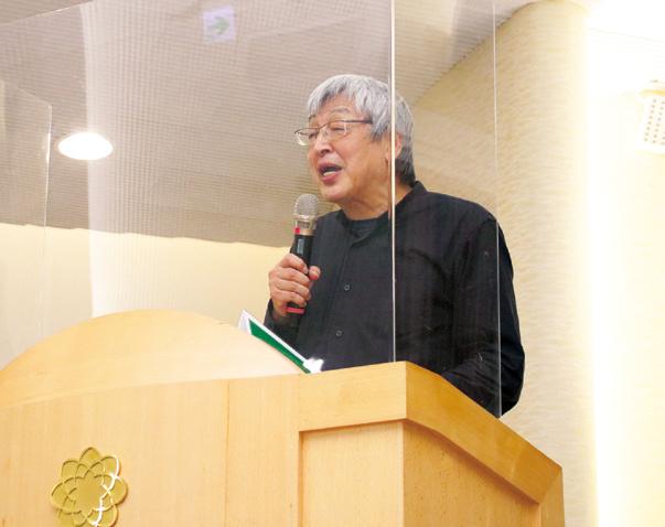 「我到哪裡都是異鄉人……」當天,他以幽默風趣的方式介紹自己的學習歷程,並分享其獲得李仲生老師教導,進而建立自己獨特風格的情形。