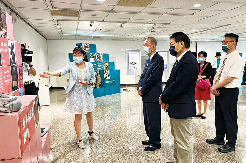 | 台大創價青年社副社長王岑妤(左1)為師長導覽 |