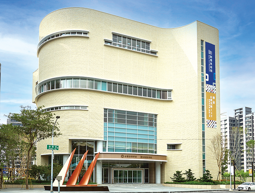 | 高雄文化會館外觀典雅美麗,門口設立藝術家李再鈐創作的〈風正帆揚時〉作品。 |