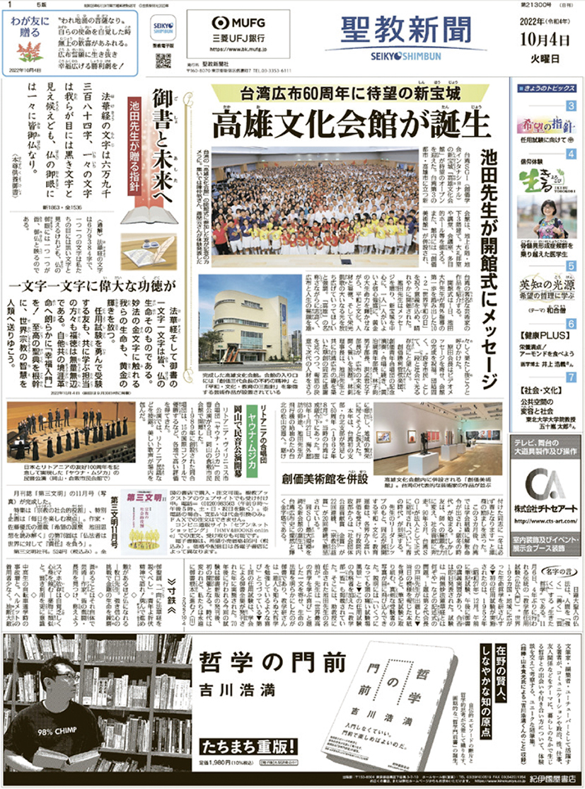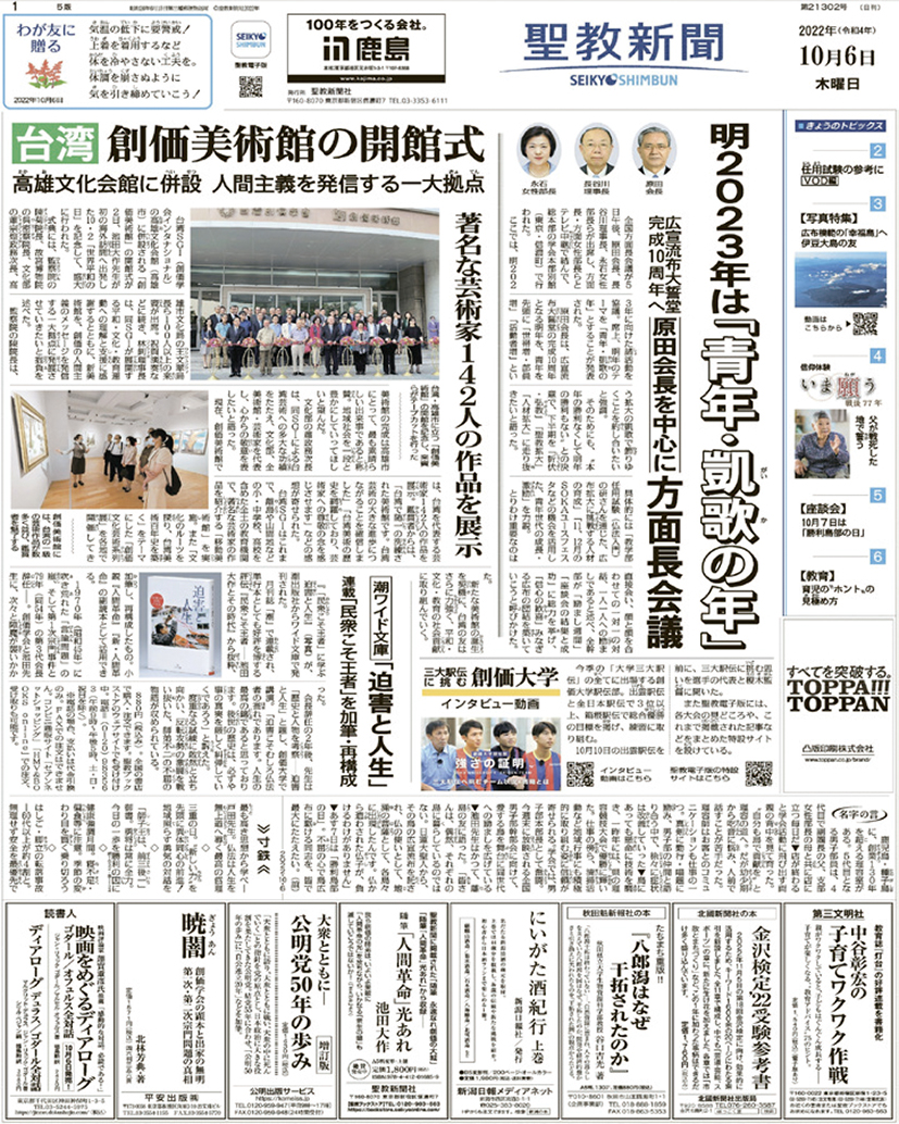 聖教新聞大幅報導 高雄文化會館、創價美術館開館消息 |
