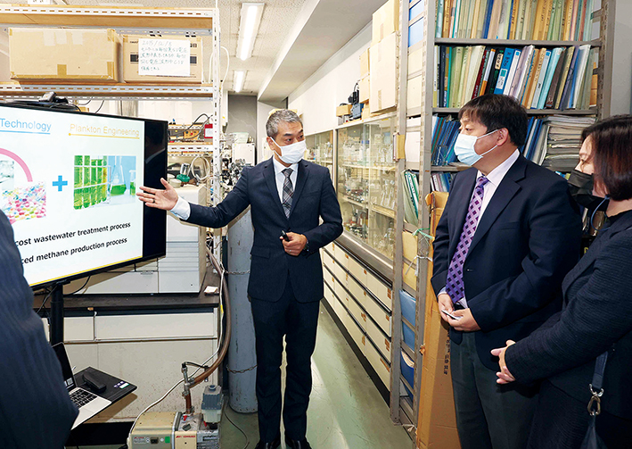 訪問期間,文大一行人參觀了創大理工學院大樓,副學院長井田旬一為大家介紹實驗室正在進行的研究計畫,引起同屬化學領域學者的王校長高度興趣。此行,王校長對於池田先生以人為本的創校理念及以學生為中心所規劃的各項設施,都留下了深刻印象。