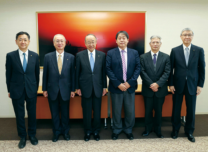 | 左起:創大副校長小山內優、神立孝一、理事長田代康則、文大校長王子奇、李彥良主任、執行長林廷鋒 |