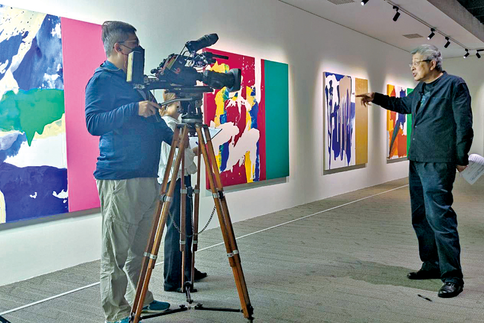 知名抽象畫家曲德義教授 應創價之邀 前往彰化藝術高中舉行行動美術館 |