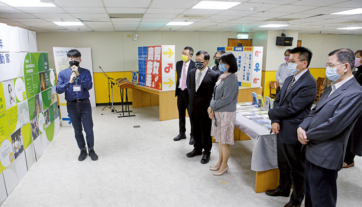 | 創價大學生王派暘(左)為主任秘書章秀秀(右3)及師長導覽 |