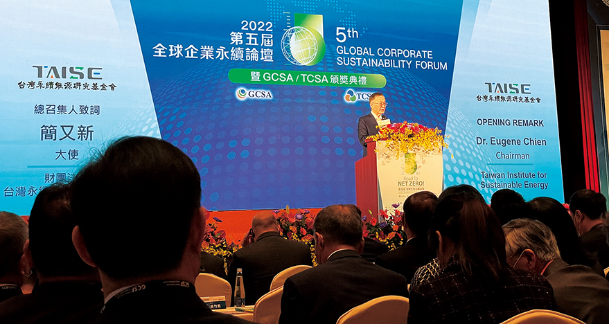 台灣永續能源研究基金會主辦的「2022第五屆全球企業永續論壇開幕式暨GCSA/TCSA頒獎典禮」於11月16日假台北圓山大飯店舉行,共有來自美國、新加坡、德國、荷蘭、馬來西亞等14國的學者專家及受獎代表與會。創價受邀擔任協力單位之一,執行長林廷鋒代表出席。