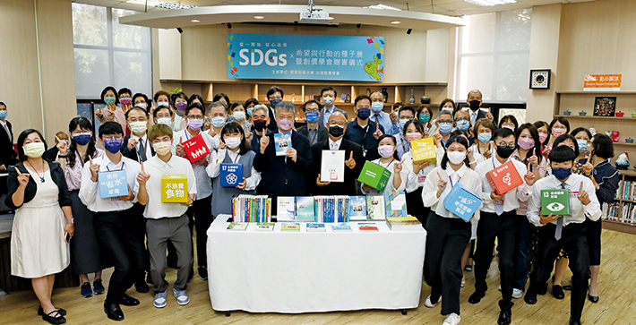 | 創價與明新科大共同舉辦SDGs展,校長劉國偉(前排左5)主持開幕典禮。 |