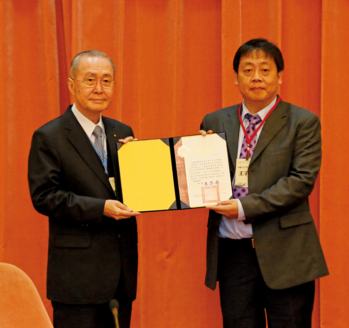 | 文大校長王子奇(右)頒贈感謝狀給創價,林釗理事長代表接受。 |