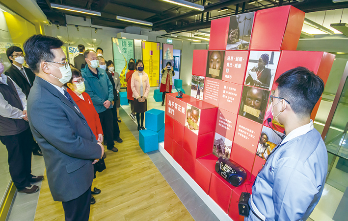 游副校長致詞時,表示:「SDGs已經成為世界的潮流,學校、企業都紛紛響應」,他誠摯希望這項展覽能激發師生展開使環境得以永續發展的行動,加入改變世界的行列。