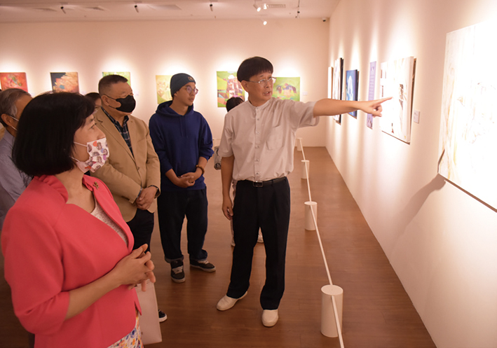 | 莊正德教授為貴賓導覽畫作 |