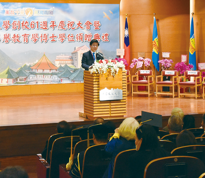 為了祝賀中國文化大學61週年校慶,日本創價大學校長鈴木將史、總合全球化辦公室部長川上喜彥、國際課係長韭澤稔等人組團來台進行訪問。3月1日上午,在林釗理事長陪同下,前往文大體育館柏英廳參加慶祝大會,受到文大董事長陳泰然、校長王子奇及校務一級主管的熱烈歡迎。