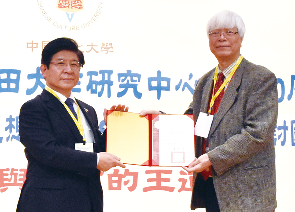 開幕式中,為感謝池田先生長期致力於推動國際文化、學術交流的卓越貢獻,文大董事長陳泰然特地頒贈「感謝狀」給池田先生,由創大校長鈴木將史代表接受,林釗理事長、研究生部、大學部代表在場觀禮。