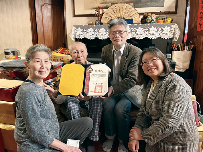 中國文化大學池田大作研究中心主任李彥良與副理事長盧怡孝,3月9、10日,前往該中心委員劉焜輝、陳鵬仁教授宅邸,代表文大校長王子奇頒贈感謝狀,感謝其長期致力翻譯池田先生著作,推廣池田先生和平思想的卓越貢獻;同時,轉達林釗理事長的衷心問候。