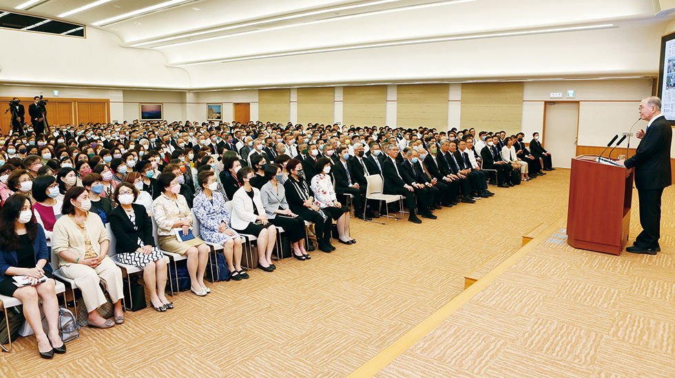 會中,池田先生特地捎來賀電讚揚每位會員「日復一日的奮鬥,日蓮大聖人的太陽民眾佛法,如今已透過創價運動,在全世界擴展開來,成為普照萬眾的希望光源。身為世界廣布先驅的各位,人人皆功德無量。」並期許大家作為好市民,為社區、社會持續做出卓越貢獻,度過創造最高價值的人生。