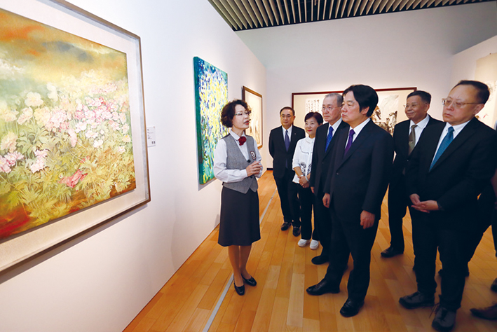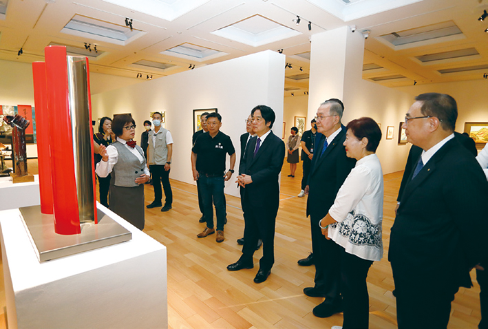 在林理事長、洪館長等人陪同下,賴副總統一行參觀了館內各項設施,並觀賞「創‧價:台灣美術142」展的精彩作品,對創價未來的發展給予誠摯祝福。