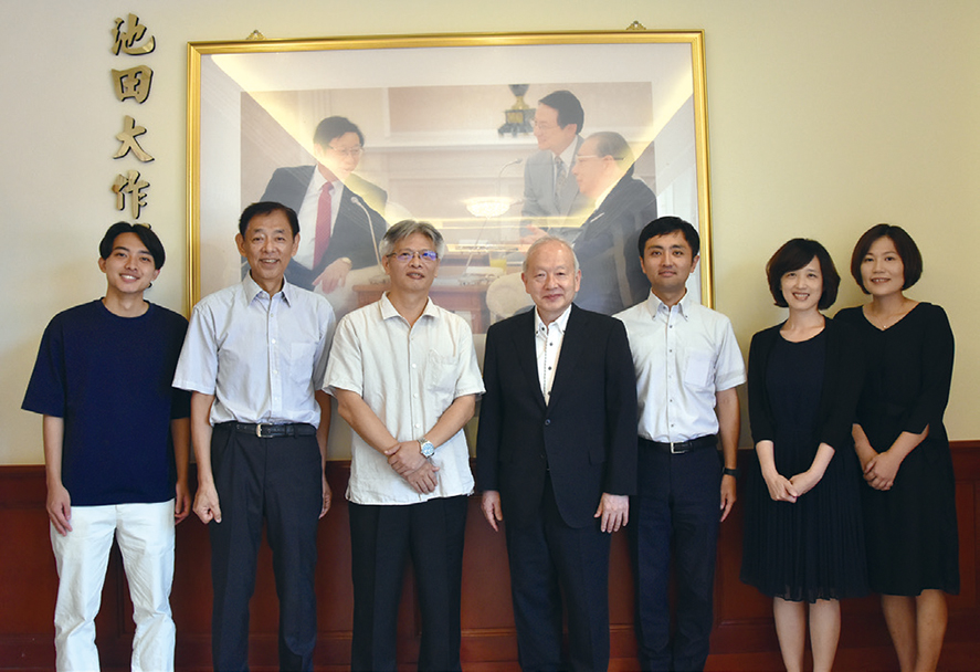 | 長岡良幸局長(右4)拜會文大池田大作研究中心李彥良主任(左3) |