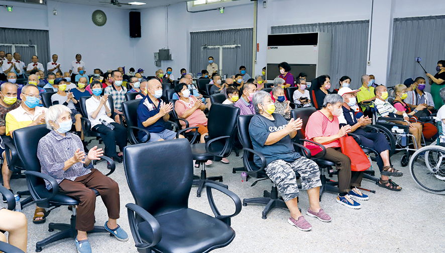 | 老人之家的長者高興地打著拍子,氣氛溫馨。 |