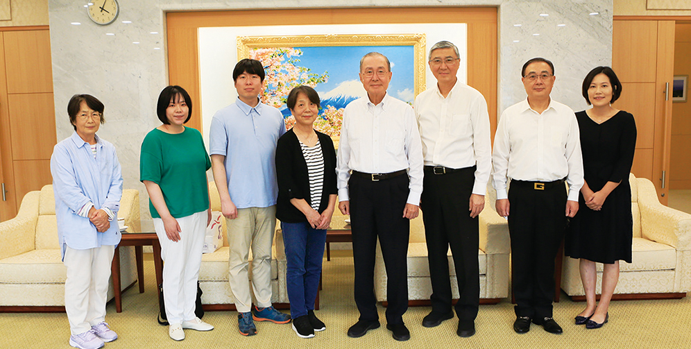 | 已故音樂總監磯貝富治男老師的夫人磯貝麗子(左4)及其家人拜會林釗理事長 |