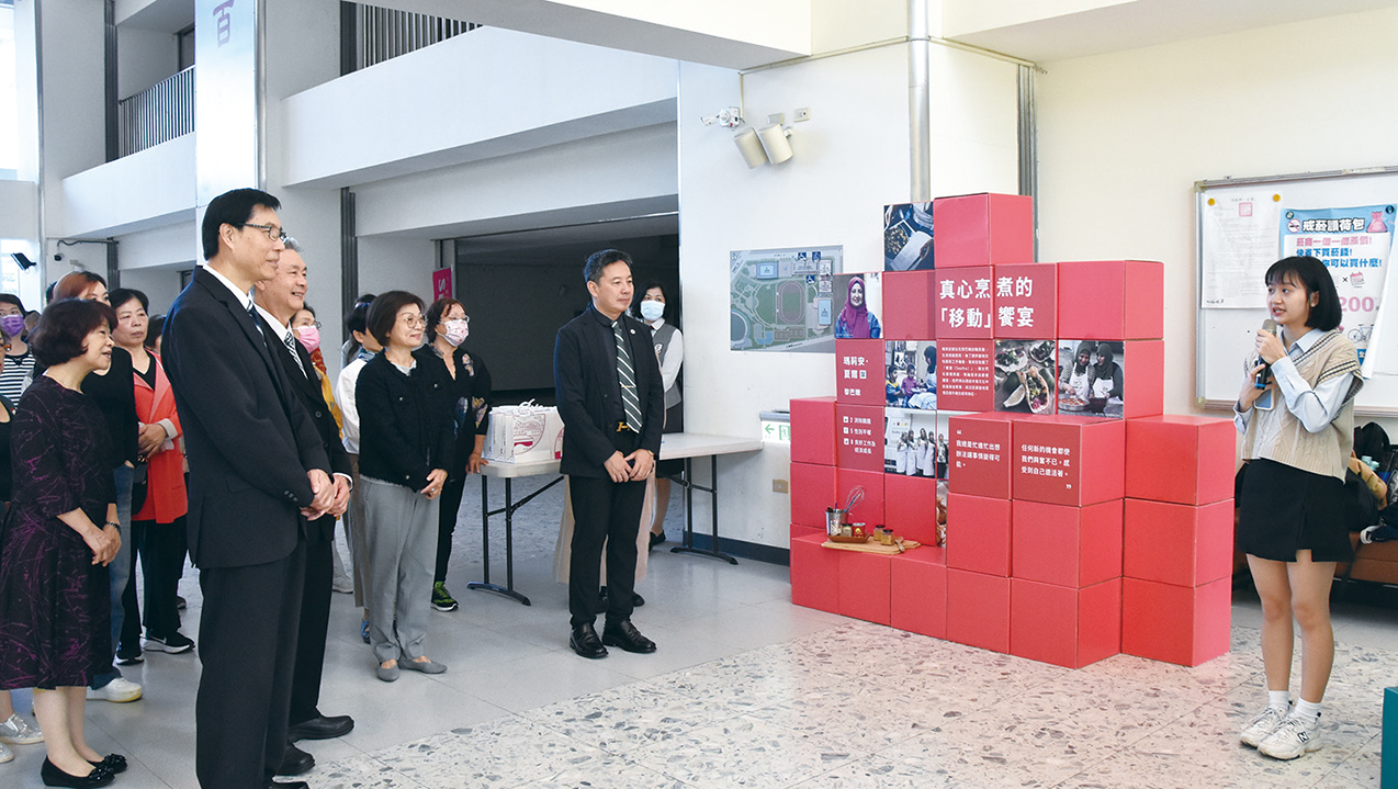 台北市立大學學生胡巧臻(右1)為師長們介紹SDGs展