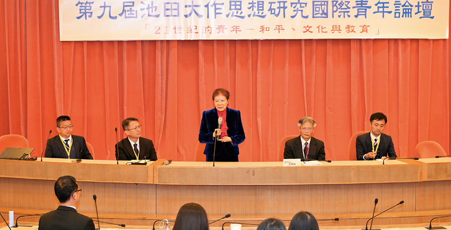 中國文化大學「池田大作研究中心」12月16日,以「21世紀的青年-和平、文化與教育」為主題,於該校曉峯紀念館國際會議廳舉辦「第9屆國際青年論壇」。 今年,共有來自台灣大學、政治大學、台灣師範大學、中山大學、陽明交通大學、日本東京工業大學、美國帝博大學等11所學校的碩博士生及大學生,分別就醫學、文學、教育、歷史、音樂等類別發表了12篇讀書心得、研究論文,獲得200多位到場參與的師生熱烈迴響。 2003年,在文大已故張鏡湖董事長大力支持下,成立了全台第一所「池田大作研究中心」,並在林彩梅前校長及李彥良主任努力推動下,每年舉辦「池田大作和平思想研究國際論壇」、「國際青年論壇」,以豐碩成果堂堂迎來今年研究中心成立20週年的佳節。 開幕式上,李彥良主任回顧論壇歷年來之舉辦盛況時,說:「在青年心中,希望的種子於今日萌芽,為明日的茁壯作準備。……青年燃燒著接受挑戰的火焰,如太陽般炙熱。」並期盼青年要接受磨練,成為充滿勇氣、智慧與慈悲之人。 為祝賀論壇成功召開,研究中心名譽主任池田博正特地捎來書面賀詞,由共同執行長林澤代為宣讀。 值得一提的是,就讀美國帝博大學博士班的赤須律子以「實踐池田大作的教育理念:分析教師為和平實踐人本教育之記錄」、東京工業大學碩士生金子浩明以「21世紀的青年應追求『自他不二』作為生活方式」為題,與台灣青年學子齊聚一堂、探討池田大作先生的和平思想。 看到青年們從不同角度、領域出發、認真學習的英姿,擔任各場次評論人的教授齊聲表示,大家胸懷人本主義精神用心思考各類課題、提出解決之道的態度,實在令人敬佩、對未來充滿希望。 林彩梅前校長於閉幕式致詞時以「經師易遇,人師難遇」來形容池田先生是一位不世出、很難值遇的偉大人師,呼籲與會青年認真學習池田先生的生命尊嚴思想,為實現世界和平、人類幸福戮力以赴。創價副理事長盧怡孝則特別感謝研究中心委員林前校長、劉焜輝、陳鵬仁等師長長年來所投注的無限心力,並祝福池田大作研究中心永續發展,文大及創價友誼長存。