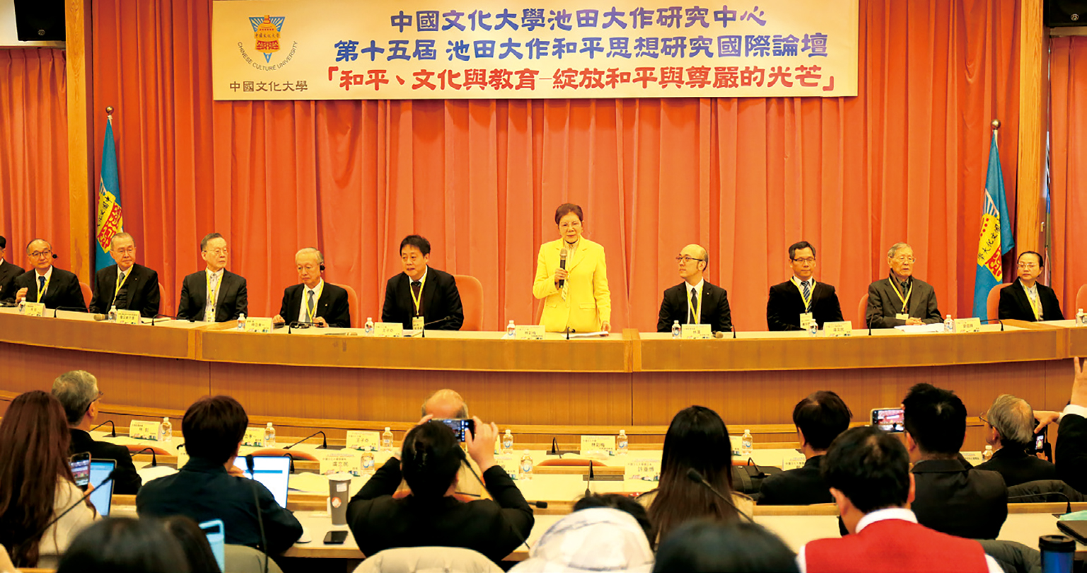 中國文化大學「池田大作研究中心」,3月2日於該校曉峯紀念館國際會議廳以「文化與教育的王道.綻放和平與尊嚴的光芒」為主題,盛大舉辦第15屆池田大作和平思想研究國際論壇,共有300多位師生及創價代表參加。