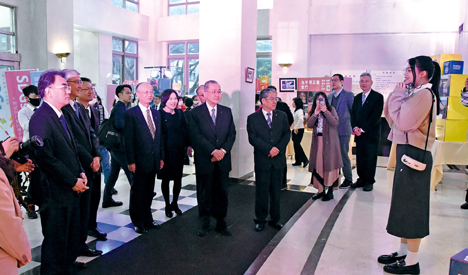 創價青年郭語喬(右1)為師長及貴賓導覽
