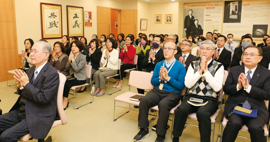 3月11日上午,林釗理事長帶領學會本部職員於至善文化會館恩師紀念室舉辦「3.16廣宣流布紀念日」勤行會,大家決意與永遠的師匠池田先生一起向著創立100週年出發!