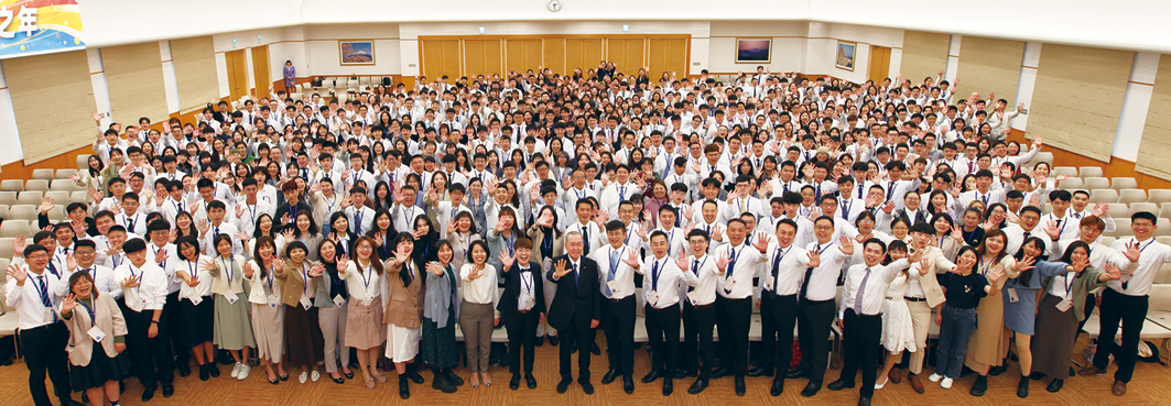 會中,林理事長以日籍美國職棒大聯盟球星大谷翔平為例指出,「面對困難要不膽怯、不畏縮,認真、充滿幹勁地奮勇向前,並鼓勵身旁夥伴一起朝向夢想前進。這正是成功的關鍵」,期勉大家懷抱「好!我要創造歷史讓大家看看」的精神,愉快、明朗、熱情、有禮貌地前進,創造屬於自身的勝利實證。