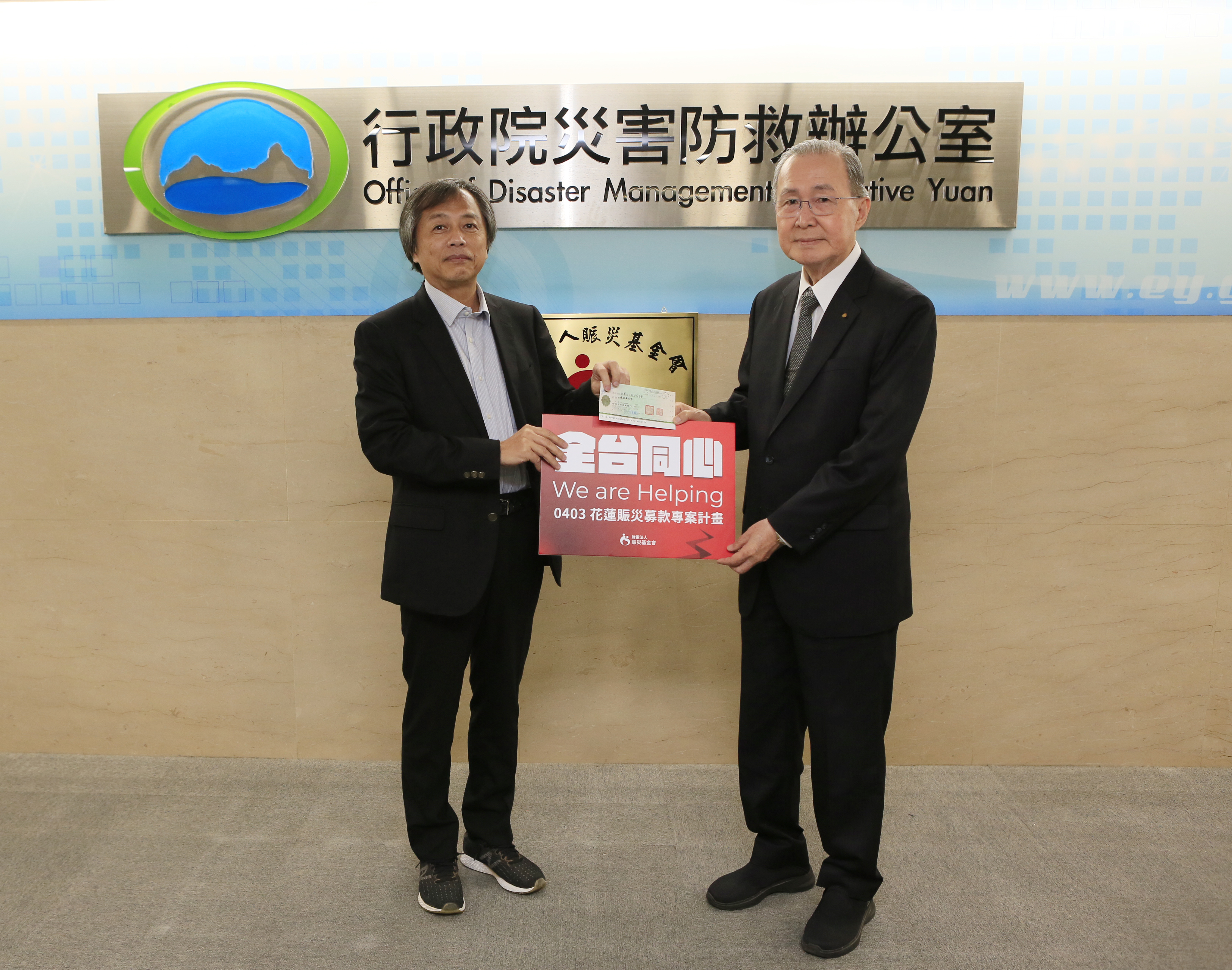 4月3日早晨,台灣發生芮氏規模7.2的地震,震央所在地花蓮災情慘重。10日下午,林釗理事長代表創價捐助賑災金新台幣300萬元協助政府進行救災及日後的重建工作,由財團法人賑災基金會執行長吳欣隆代表接受。