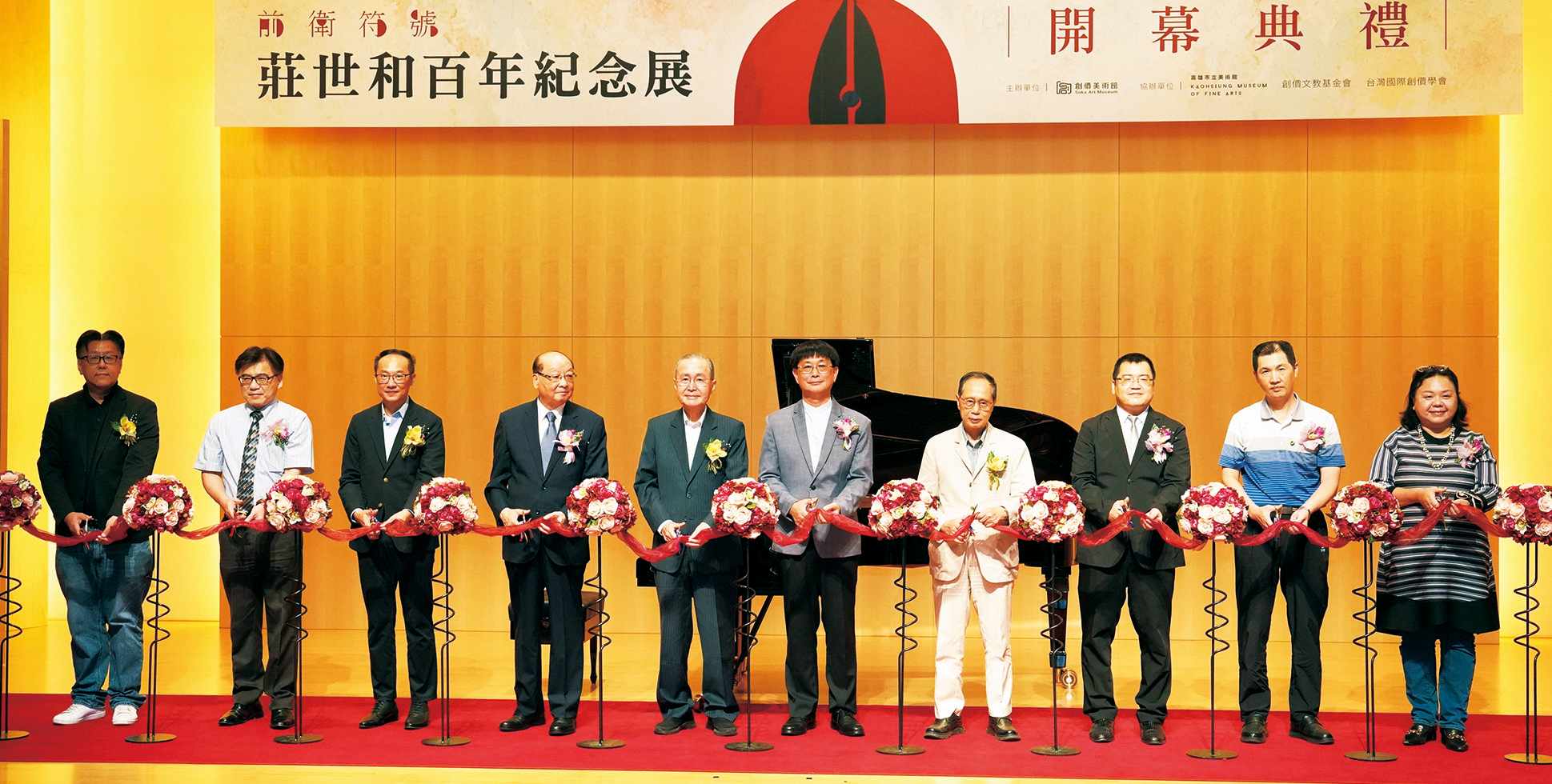 「前衛.符號─莊世和百年紀念展」於6月16日下午在至善文化會館舉辦開幕典禮。除了創作者家屬代表莊正德、林釗理事長之外,前文化部長洪孟啟、前國立故宮博物院副院長林柏亭、順益台灣原住民博物館主任林威城及基隆市立港西國小校長吳哲銘等多所中小學校長蒞臨祝賀。