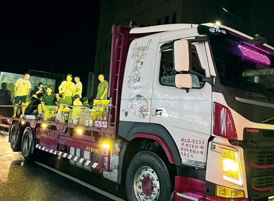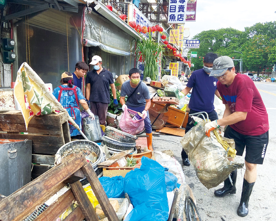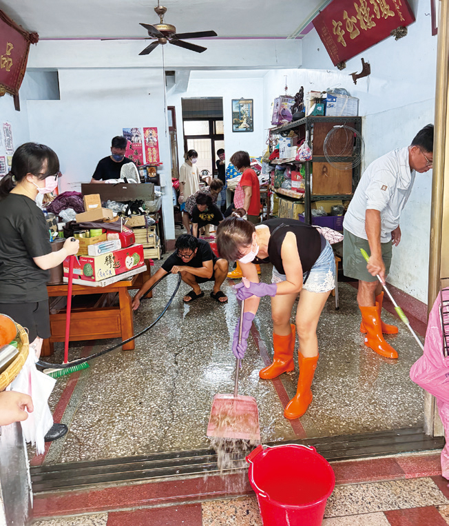 凱米颱風7月24、25日來襲,於全台各地帶來了強風豪雨,特別是帶給中南部驚人雨量,造成淹水等嚴重災情。 台南鹽水區距離八掌溪不遠,因溪水暴漲淹及民房,有些房子水深及腰,家中物品泡在水裡一整天,成為這次颱風的重災區之一。台南北區後壁地區萬正常夫婦主動聯繫當地派出所,表示願意前往協助。在雨勢趨緩、淹水尚未完全退去的26日晚間,由萬正常父子等人開著三輛大卡車與10多位學會員進入鹽水、後壁等地,沿路發送便當等食物及物資給受災戶,一直忙到凌晨四點才返家。27日下午,台南北區近50位會員協助災民搬運汙損家具、清運垃圾及清掃等工作。 「摸黑開車過來,辛苦你們」、「有你們幫忙真好!」許多災民相當感動地說道。鹽北、鹽中地區婦人部長吳素真、黃夕珍,雖然自己也是受災戶,仍騎著摩托車穿梭在大街小巷,關心會員受災的情況,並提供受災會員熱呼呼的餐食。 位於雲林的東勢及西螺兩座文化會館也有積水狀況,26、27日,雲林二區40位會員、雲林一區雲北本部與西螺支部會員及青年部,分別前往這兩座會館清理、打掃。27日,嘉義區7位壯婦部前往華山文化中心、慈恩堂協助清掃周遭的落葉及清除傾倒檳榔樹,使環境煥然一新。 彰化一區彰美支部副婦人部長梁家毓家中淹水嚴重,28、29日,支部副婦人部長莊秀英與地區幹部前往協助打掃。 創價會員秉持「人飢己飢、人溺己溺」精神,奮勇投入救災的行動,讓受災戶受到莫大鼓舞。