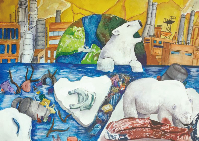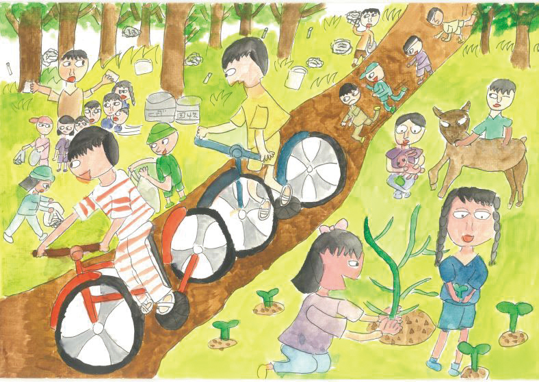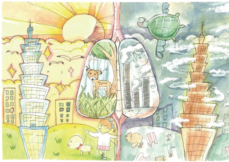 此次參賽作品豐富多元,學生們運用豐富的想像力及環保知識,透過畫作傳達對健康生活的想像與期待,獲得評審高度讚許。